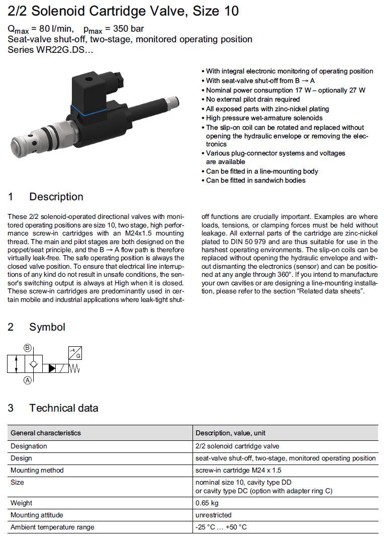 詳細(xì)信息 WR22GEDSAA-10-1,WR22GNDSAA-10-1,WR22GECSAA-10-1,WR22GNCSAA-10-1,Bucher方向閥