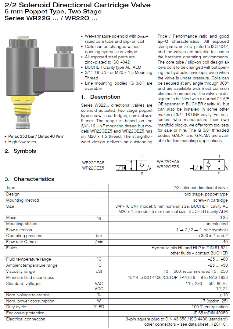 詳細信息 WR22GEA5-1,WR22OEA5-1,WR22GEA5V-1,WR22OEA5V-1,Bucher方向閥