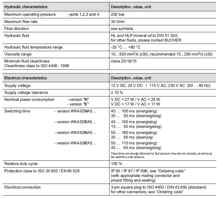 詳細(xì)信息 WK43GNA5-1,WK43DNA5-1,WK43GEA5-1,WK43DEA5-1,WK43GNA5V-1,WK43DNA5V-1,Bucher方向閥