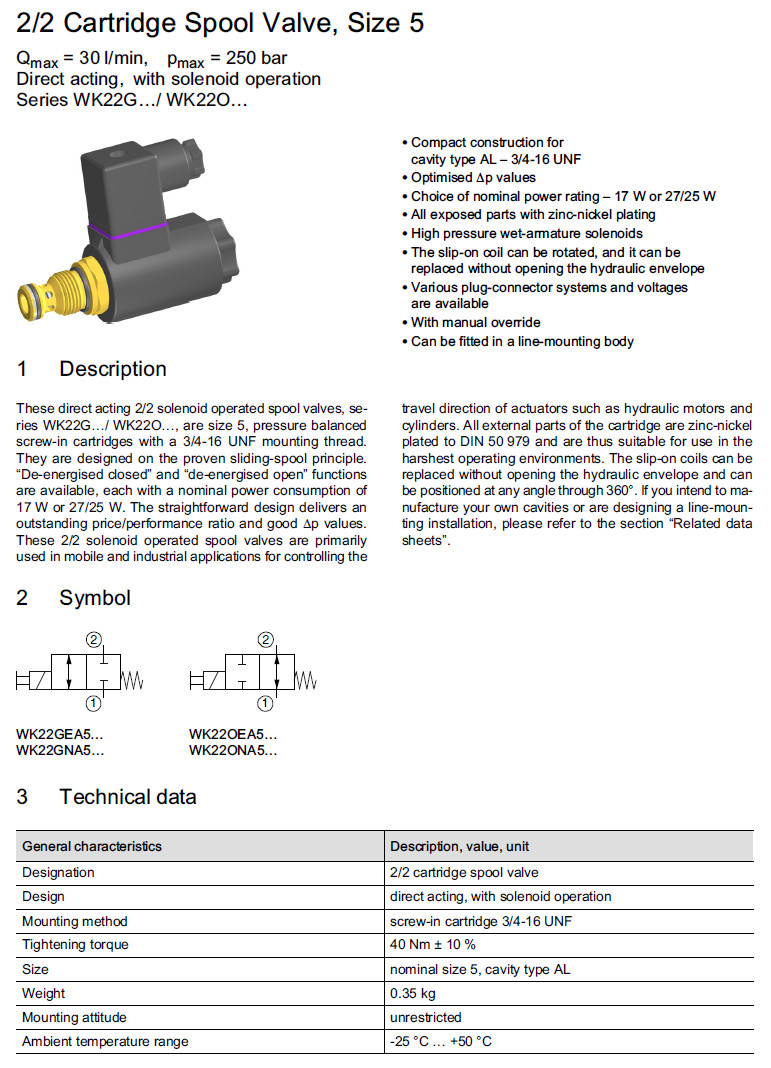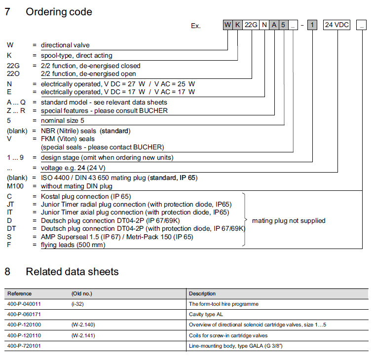 詳細(xì)信息 WK22GNA5-1,WK22ONA5-1,WK22GEA5-1,WK22OEA5-1,WK22GNA5V-1,WK22ONA5V-1,Bucher方向閥