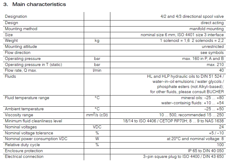 詳細(xì)信息 WEDL-42-S-6-V-1,WEDL-43-D-6-V-1,WEDL-43-G-6-V-1,WEDL-43-H-6-V-1,Bucher電磁換向閥