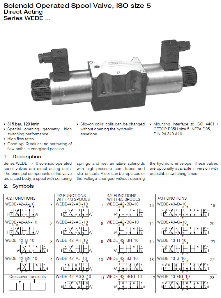 WEDE-43-AD,WEDE-43-B,WEDE-43-D,WEDE-42-G,WEDE-42-AD,WEDE-42-B,Bucher直動(dòng)式電磁換向閥