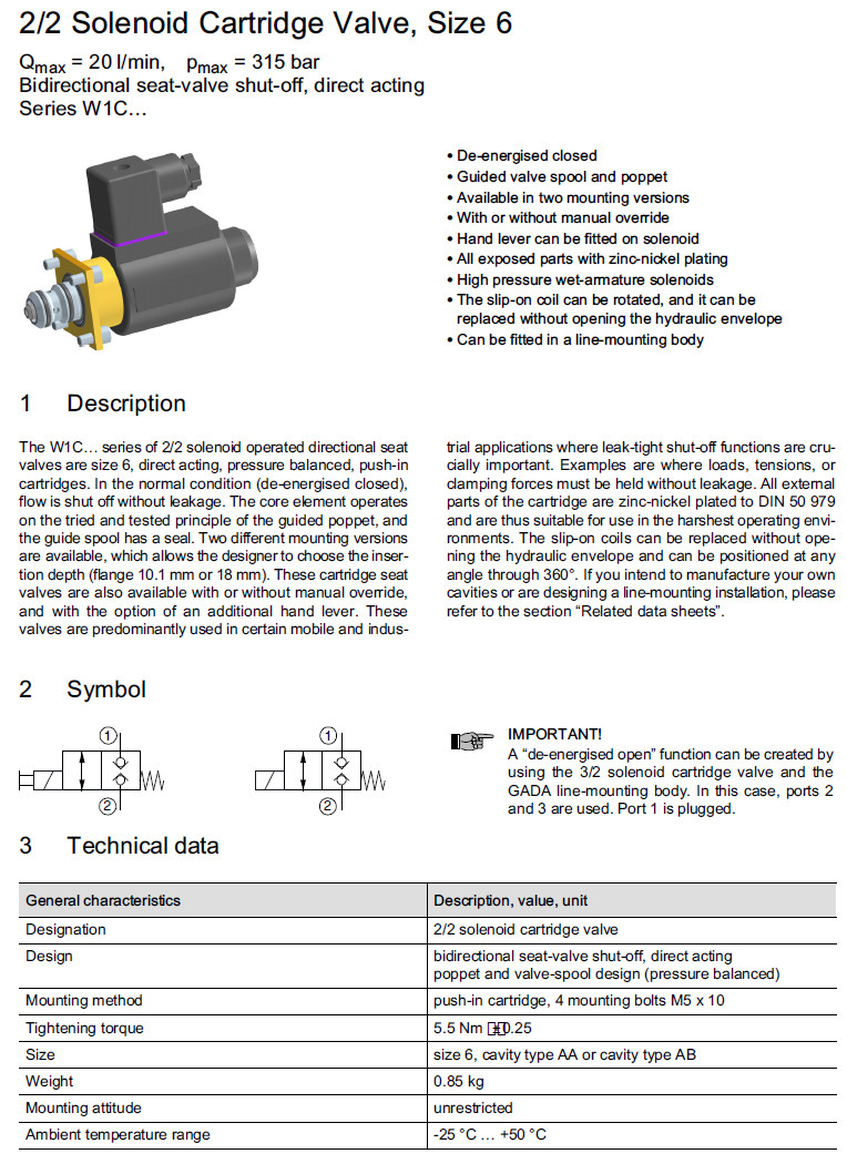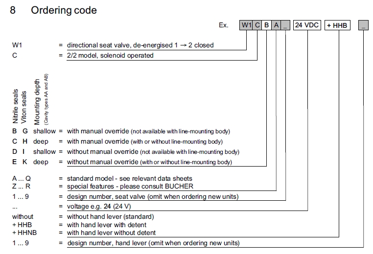 詳細信息 W1CBA1-24VDC,W1CCA1-24VDC,W1CDA1-24VDC,W1CEA1-24VDC,Bucher方向閥
