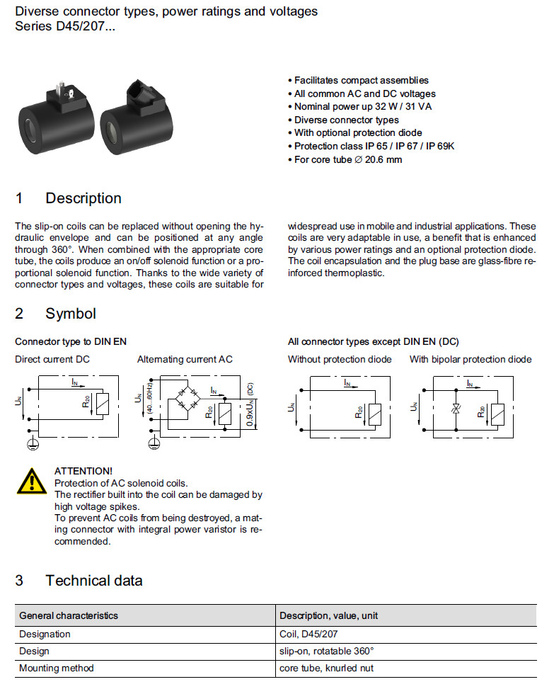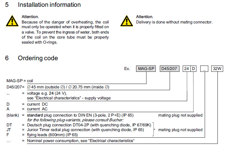 詳細(xì)信息 MAG-SP-D45/207-24D-27W,MAG-SP-D45/207-24D-DT-27W,MAG-SP-D45/207-24A-JT-27W,Bucher電磁閥線圈