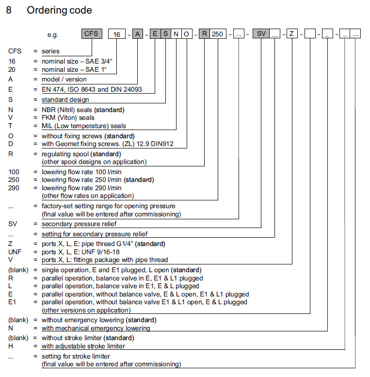CFS16-A-ESNO-R250,CFS20-A-ESNO-R100,CFS16-A-ESVO-R250,CFS20-A-ESVO-R290,Bucher挖掘機管道破裂閥