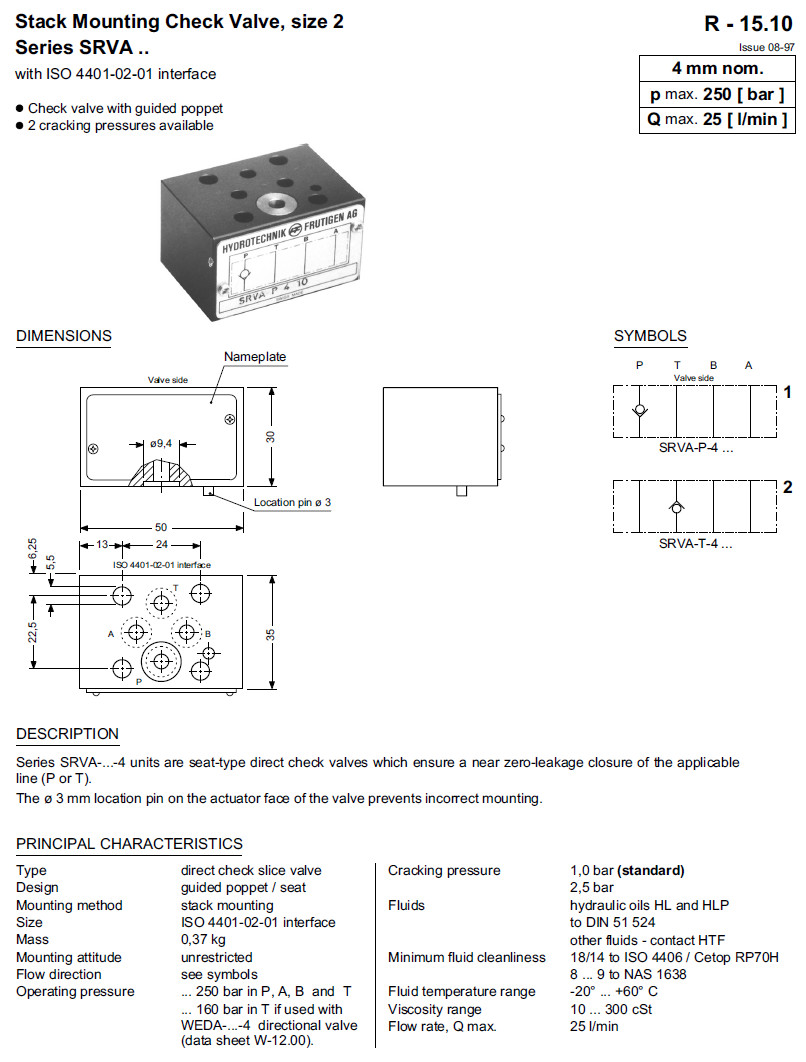 詳細信息 SRVA-P-4-10-1,SRVA-T-4-10-1,SRVA-P-4-25-1,SRVA-T-4-25-1,Bucher疊加閥