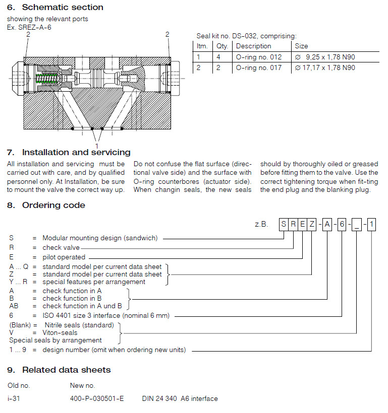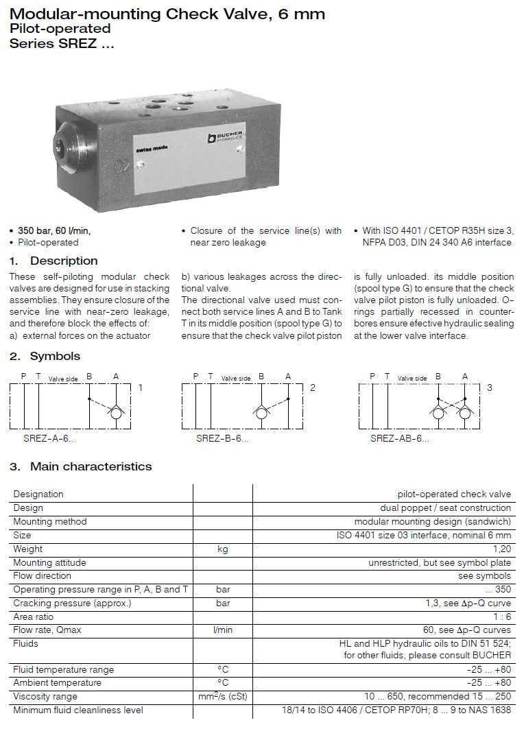 詳細(xì)信息 SREZ-A-6-1,SREZ-B-6-1,SREZ-AB-6-1,SREZ-A-6-V-1,SREZ-B-6-V-1,SREZ-AB-6-V-1,Bucher模塊安裝止回閥