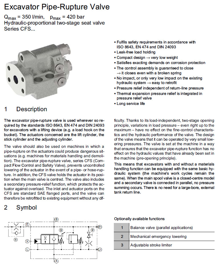 您當前的位置: 首頁 » 產品&解決方案 » CFS16-A-ESNO,CFS20-A-ESNO,CFS16-A-ESVO,CFS20-A-ESTO,CFS16-A-ESVD,Bucher挖掘機管道破裂閥