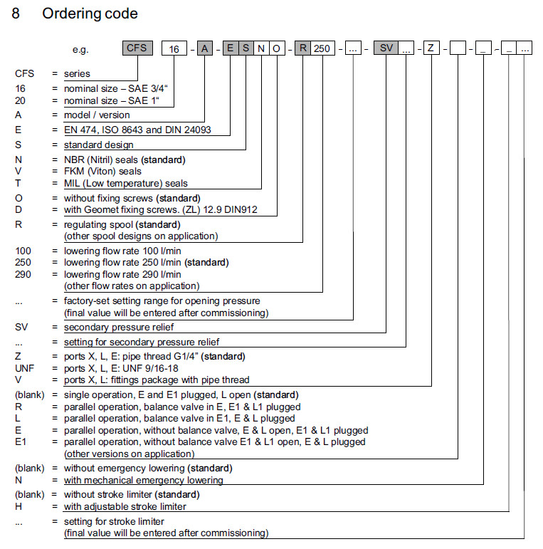 CFS16-A-ESNO,CFS20-A-ESNO,CFS16-A-ESVO,CFS20-A-ESTO,CFS16-A-ESVD,Bucher挖掘機管道破裂閥