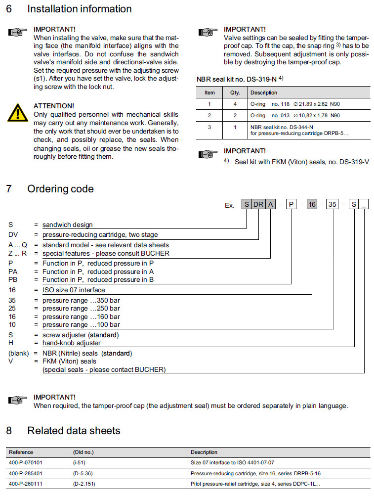 SDRA-P-16-35-SV,SDRA-P-16-25-SV,Bucher,SDRA-P-16-16-SV,SDRA-P-16-10-SV,