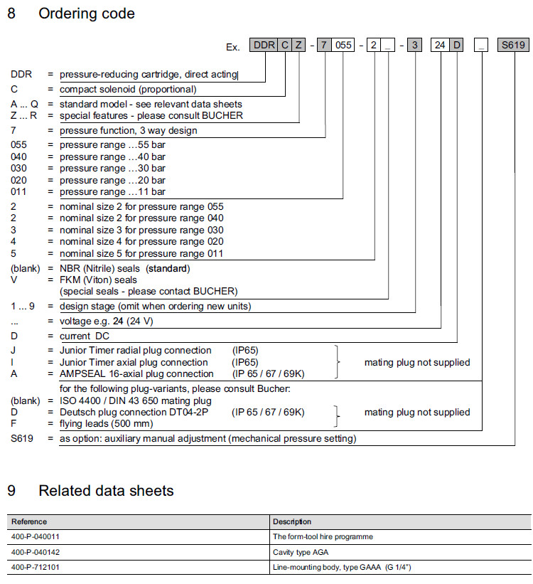 詳細信息 DDRCZ-7055-2,DDRCZ-7040-2,DDRCZ-7030-3,DDRCZ-7020-4,DDRCZ-7011-5,Bucher減壓閥