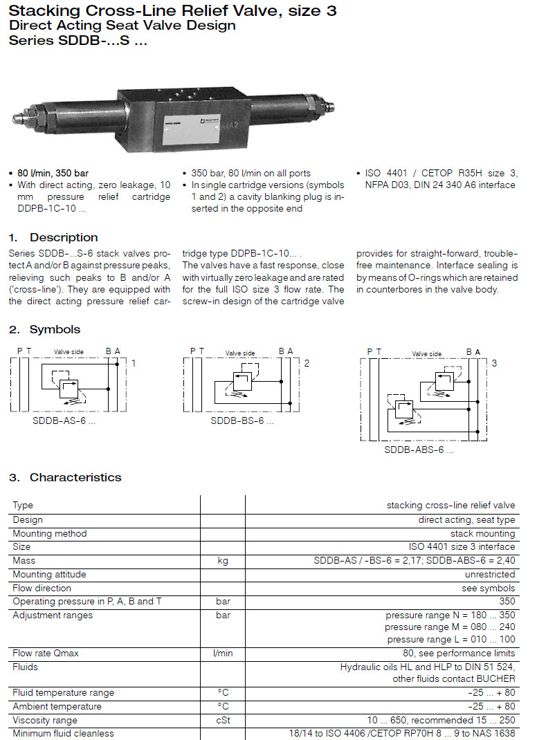 詳細信息 SDDB-AS-6-SN,SDDB-BS-6-SM,SDDB-ABS-6-SL,SDDB-AS-6-SNV,SDDB-AS-6-SMV,Bucher跨線卸壓閥