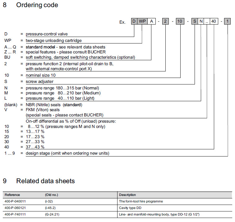 DWPA-2-10-SL10-2,DWPA-2-10-SM10-2,DWPBU-2-10-SL10-1,DWPBU-2-10-SM10-1,Bucher卸壓閥