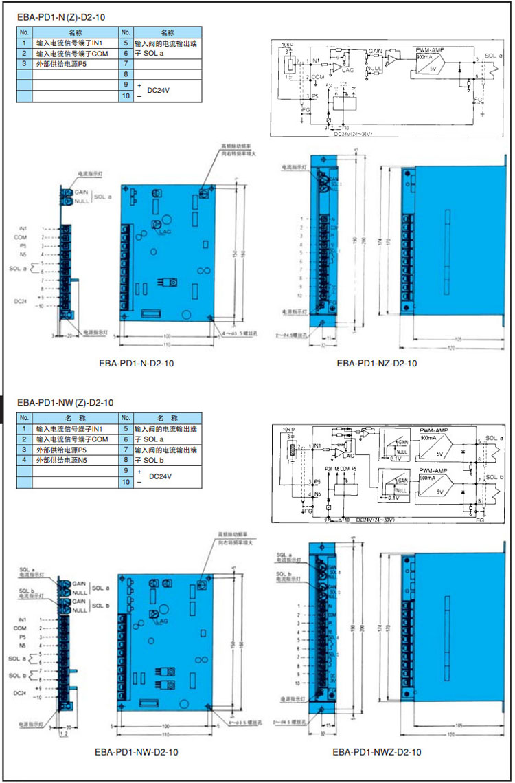 EBA-PD1-N-C1-10,EBA-PD1-NW-C1-10,EBA-PD1-NWZ-D2-10,EBA-PD1-Z-D2-10,NACHI小型比例放大器