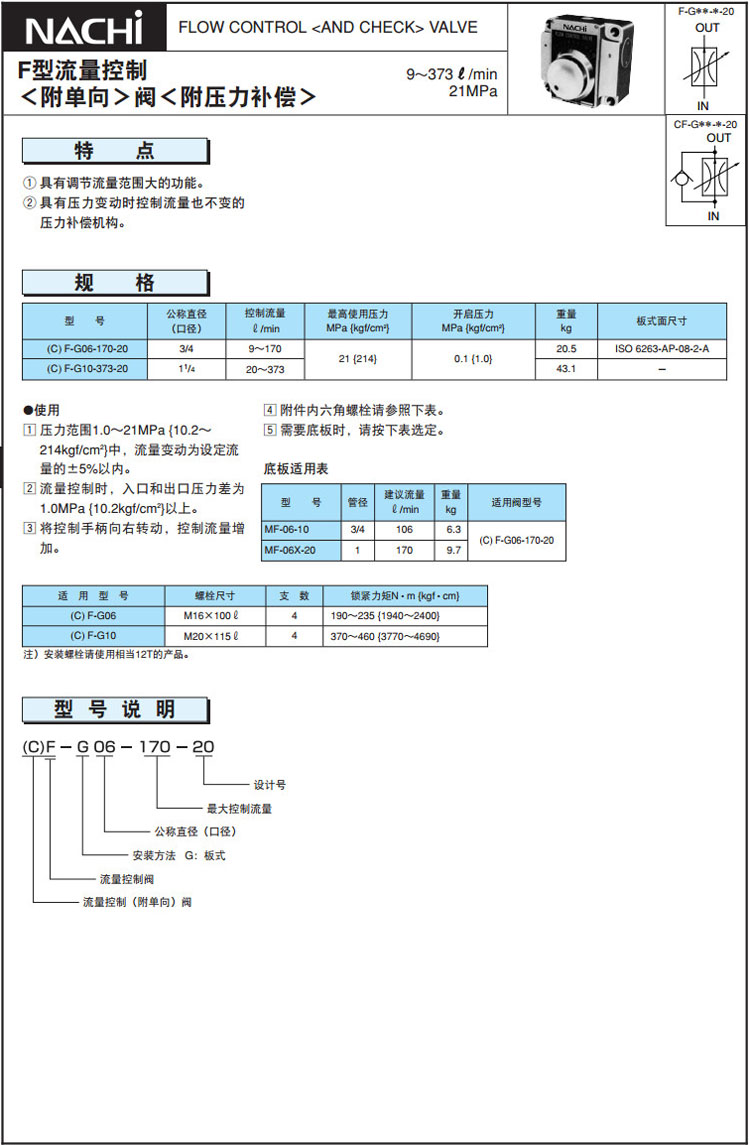 CF-G06-170-20,CF-G10-373-20,F-G06-170-20,F-G10-373-20,NACHI流量控制閥