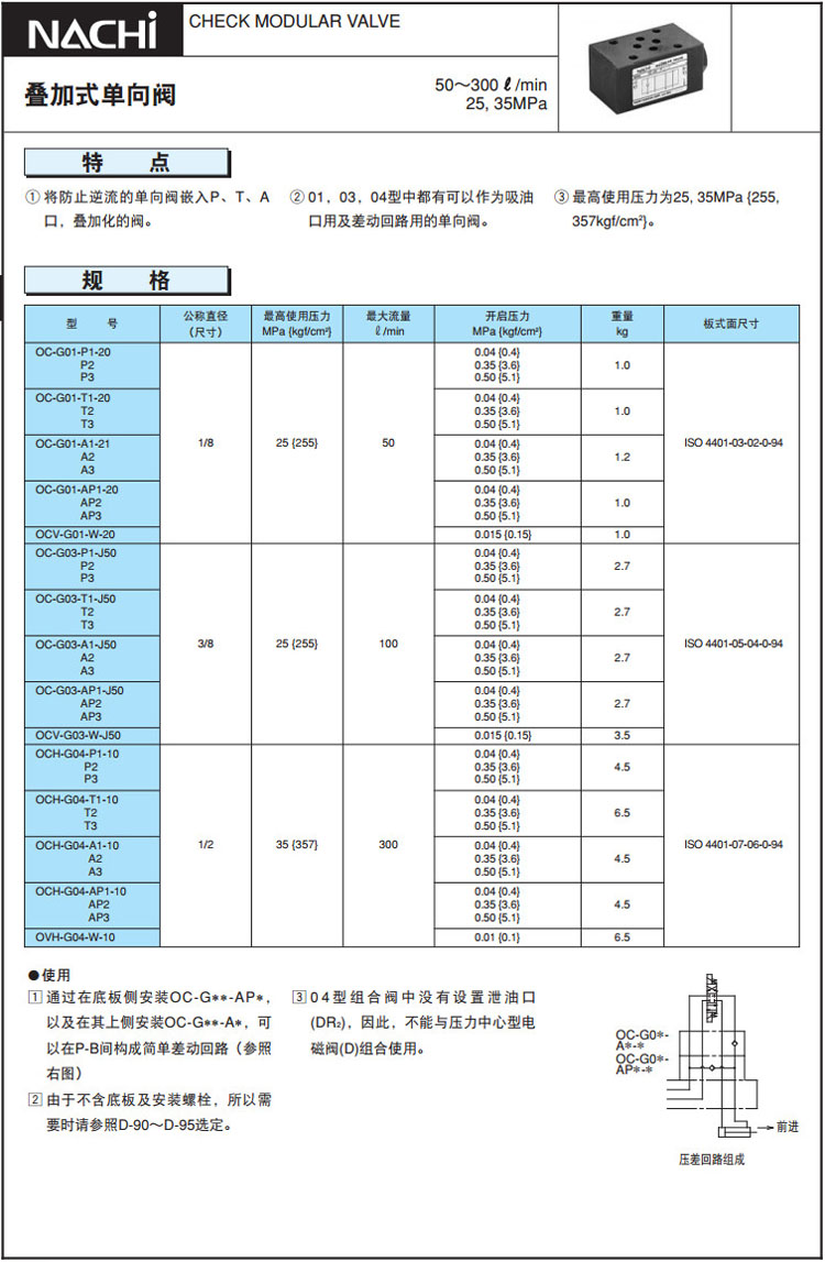 OC-G01,OC-G03,OCV-G01,OCV-G03,OCH-G04,OCV-G01-W-20,OCH-G04-W-10,NACHI疊加式單向閥