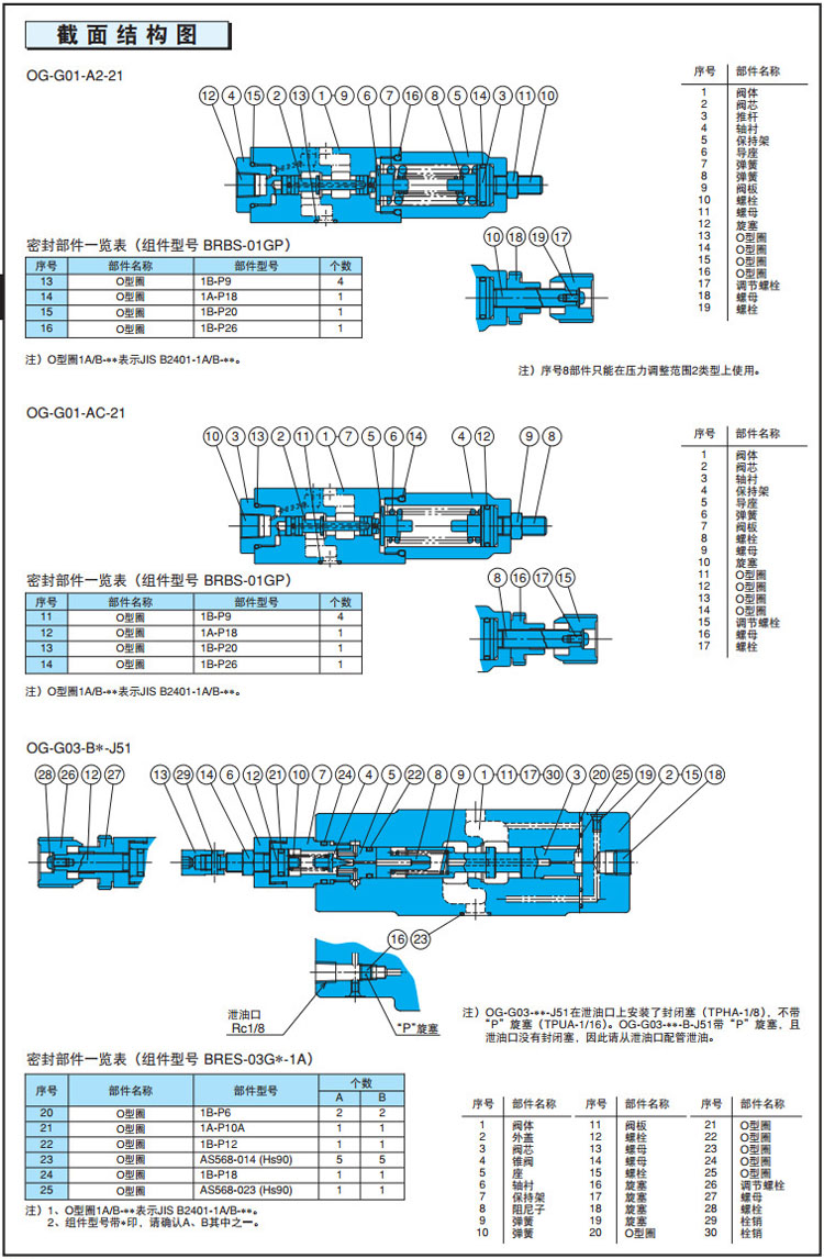 OG-G01,OG-G03,OGH-G04,OG-G01-AC-21,OG-G03-AC-J51,OGH-G04-B3-10,NACHI疊加式減壓閥