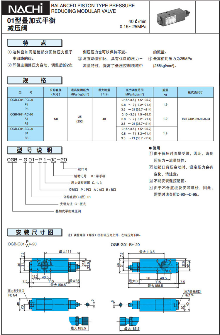 詳細(xì)信息 OGB-G01-PC-20,OGB-G01-A3-20,OGB-G01-B3-20,OGB-G01-P3-20,NACHI疊加式平衡減壓閥