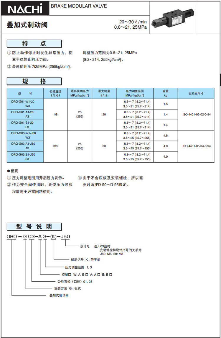 詳細(xì)信息 ORO-G01-W1-20,ORO-G01-W3-20,ORO-G03-W1-J50,ORO-G03-W3-J50,NACHI疊加式制動(dòng)閥