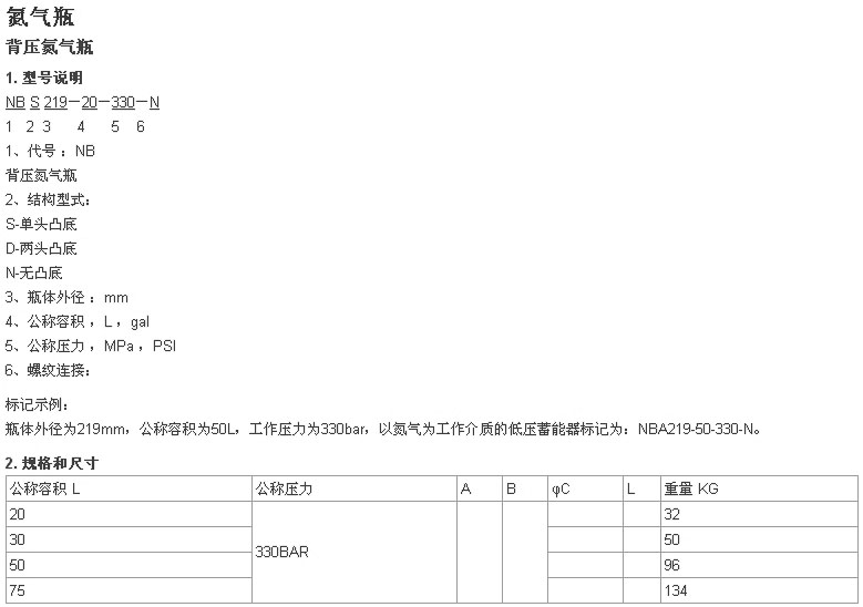 NBS219-20-330-N,NBD219-30-330-N,NBS219-50-330-N,NBS219-75-330-N,氮?dú)馄?/strong>