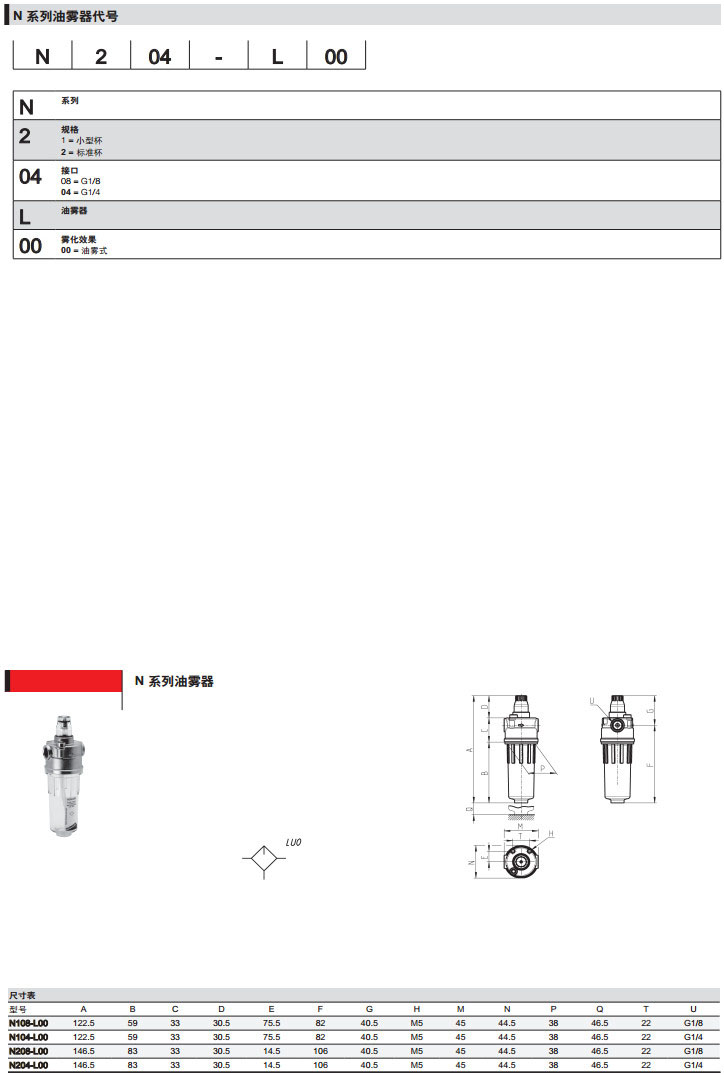 N104-L00,N108-L00,N204-L00,N208-L00,camozzi油霧器