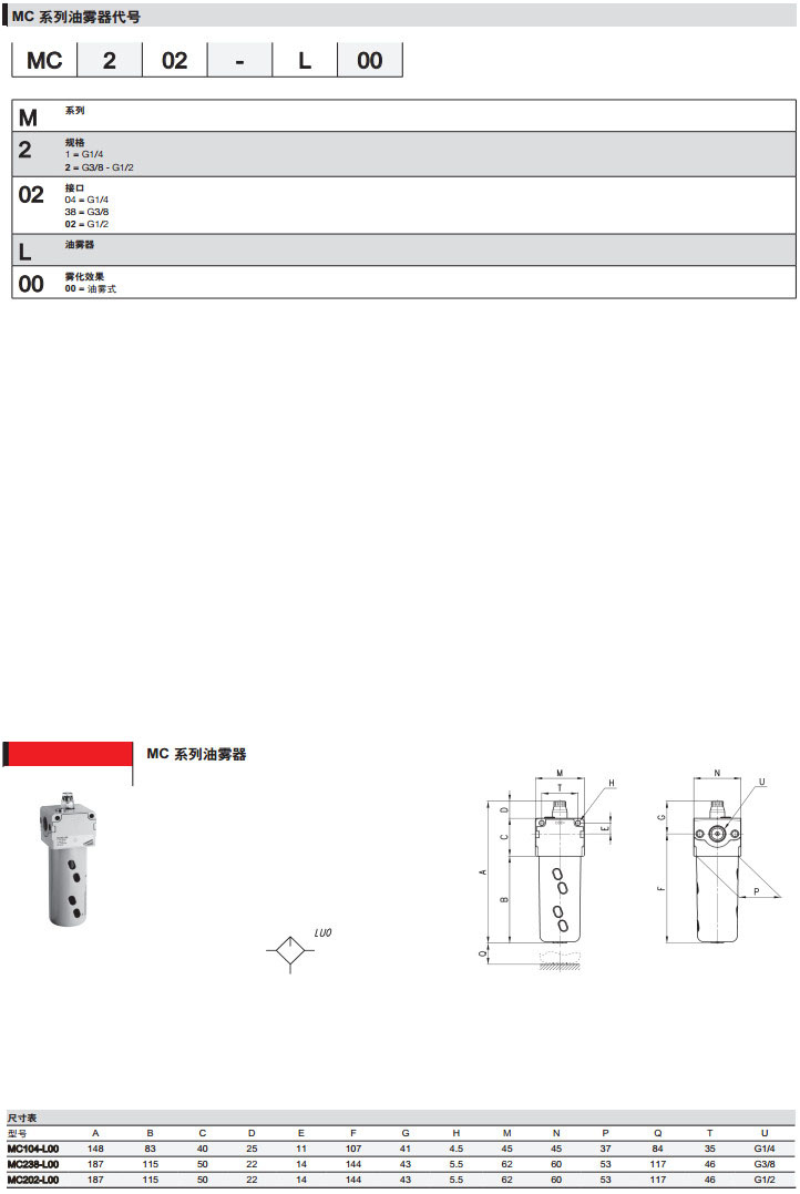 MC104-L00,MC138-L00,MC102-L00,MC204-L00,MC238-L00,MC202-L00,camozzi油霧器