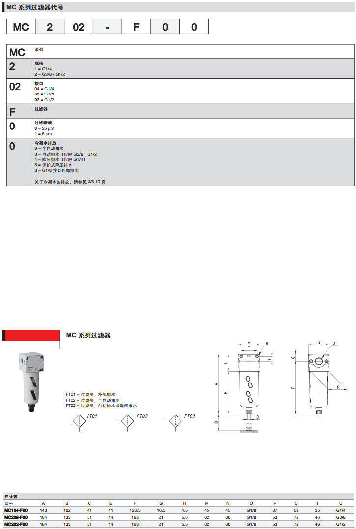 MC104-F00,MC138-F03,MC102-F05,MC204-F04,MC238-F15,MC202-F08,camozzi過(guò)濾器
