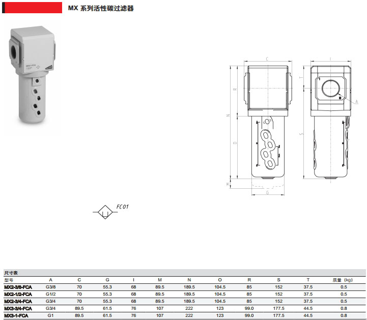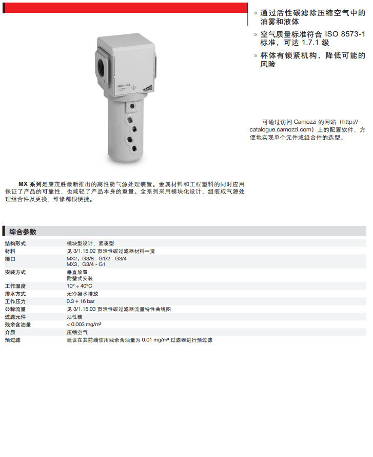 詳細(xì)信息 MX2-3/8-FCA,MX2-1/2-FCA,MX2-3/4-FCA,MX3-3/4-FCA,MX3-1-FCA,camozzi活性碳過濾器