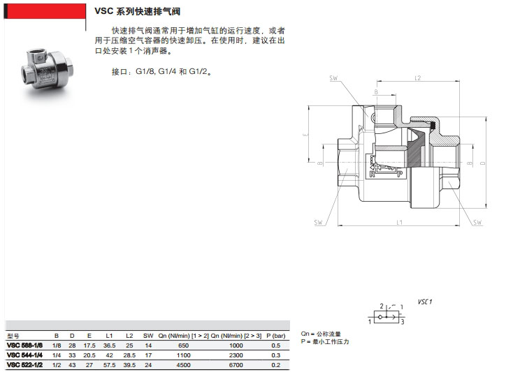 詳細(xì)信息 VSC-568-1/8,VSC-544-1/4,VSC-522-1/2,camozzi快速排氣閥