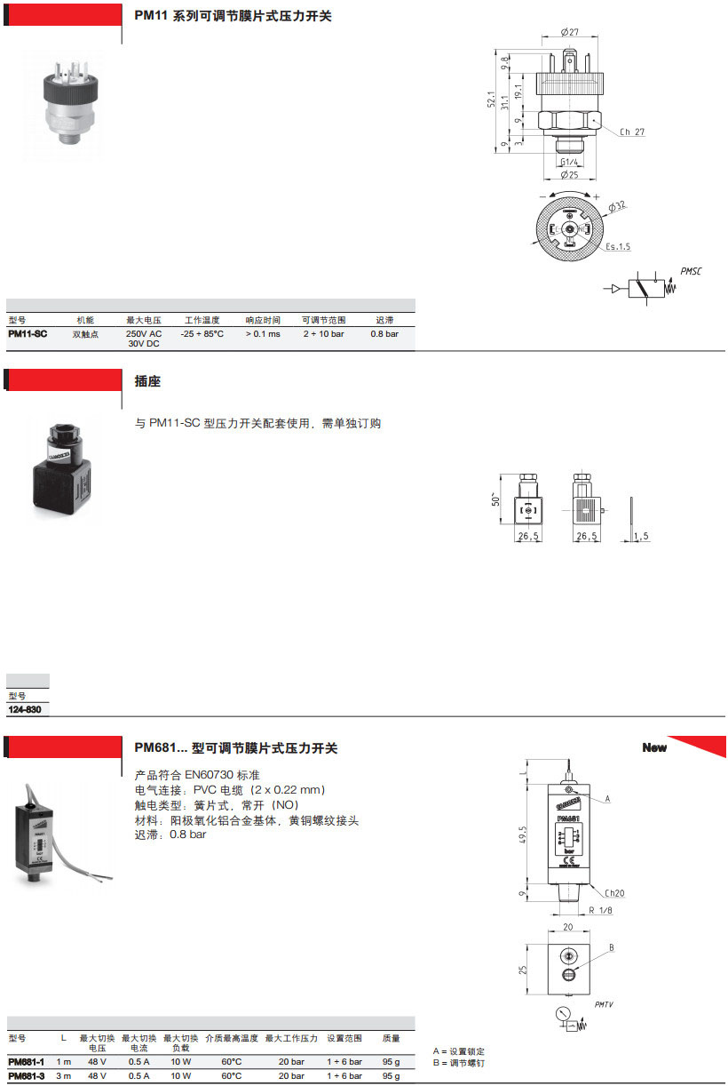 PM11-NC,PM11-NA,TRP-8,2950-M5,PM11-SC,124-830,PM681-1,PM681-3,camozzi壓力開(kāi)關(guān)