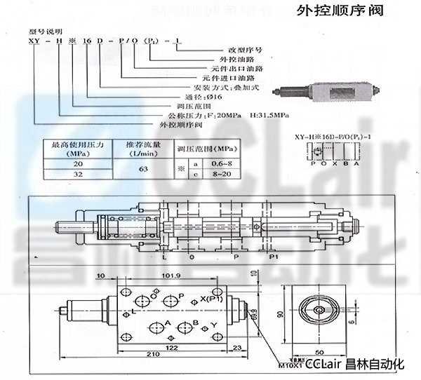 XY-Fa16D-P/O(P1)-1, XY-Fc16D-P/O(P1)-1,單向順序閥,
