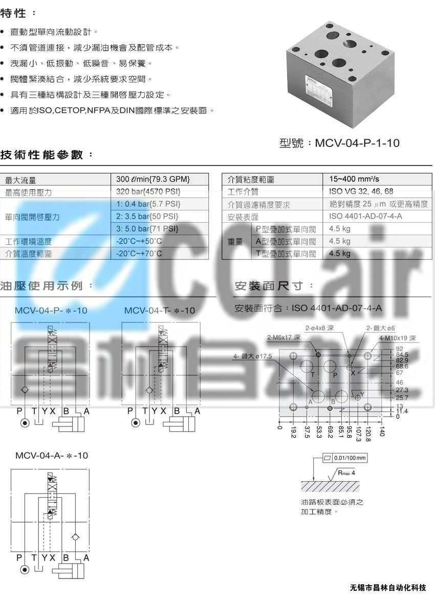 MCV-04-P,MCV-04-T,MCV-04-A,疊加式單向閥