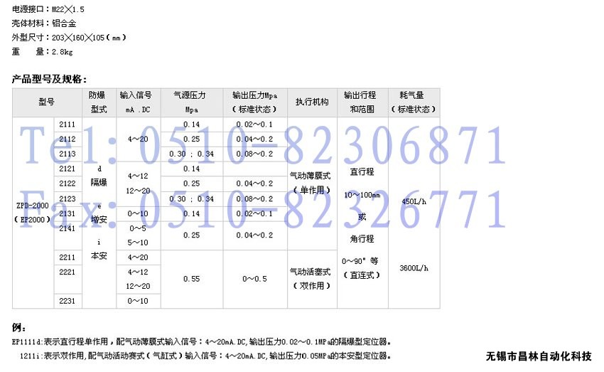 詳細(xì)信息 EP2111,EP2112,EP2113,EP2121,EP2122,EP2123,EP2131,EP2141,EP2211,EP2221,EP2231電氣閥門定位器