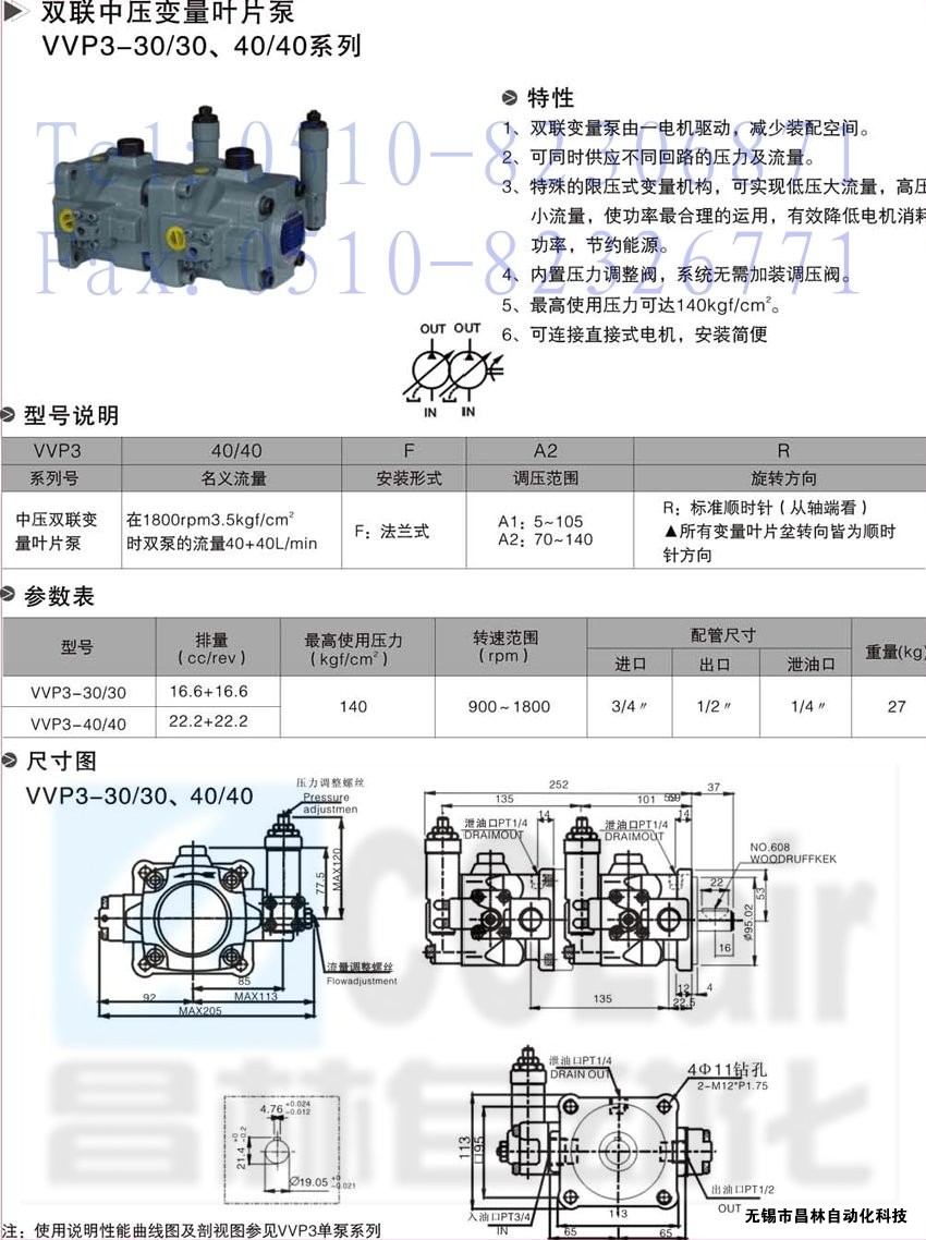 詳細(xì)信息 VVP3-30/30,VVP3-40/40,雙聯(lián)中壓變量葉片泵,生產(chǎn)廠家,價(jià)格