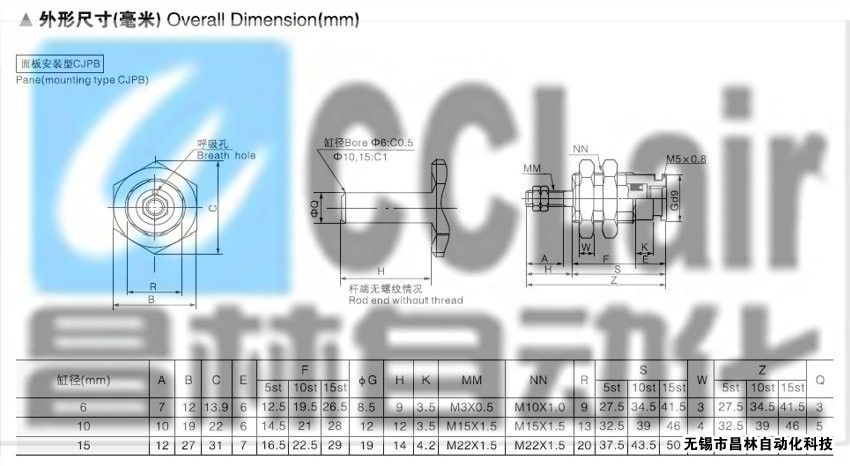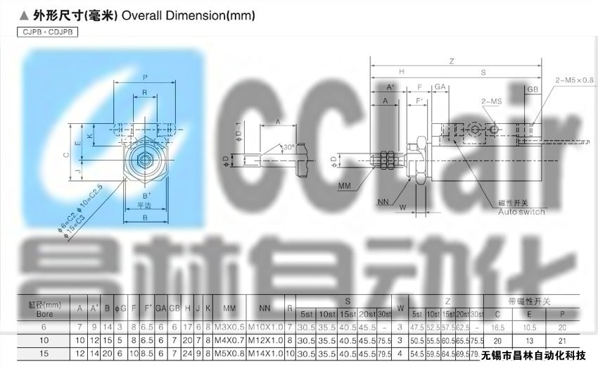 CJPB15-10,CJPB15-15,CJPB15-20,CJPB15-30,針型單動(dòng)氣缸