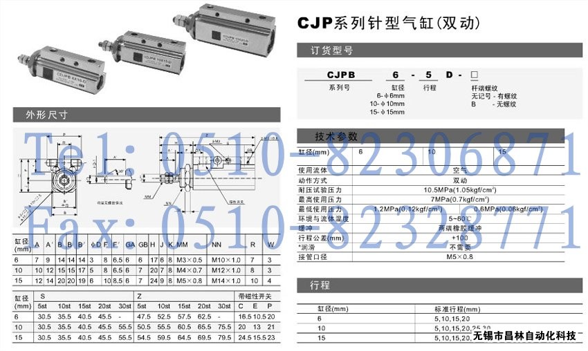 詳細信息 CJPB10-5D-B,CJPB10-10D-B,CJPB10-15D-B,CJPB10-20D-B,CJPB10-25D-B,針型氣缸(雙動)
