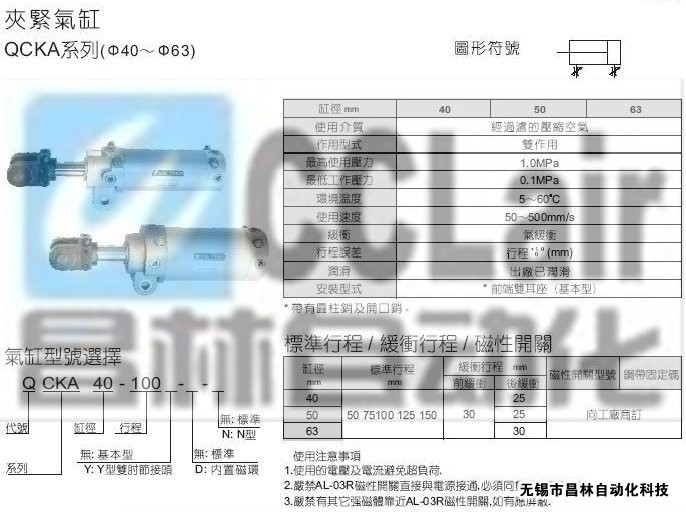 QCKA50*175,QCKA63*200,QCKA80*25,QCKA100*50,QCKA40*75,QCKA50*100,夾緊氣缸