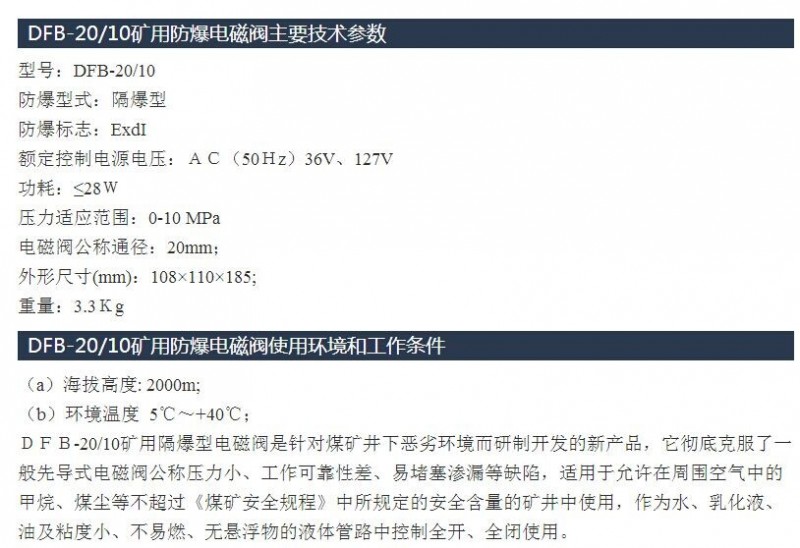 DFB-20/10,礦用防爆電磁閥
