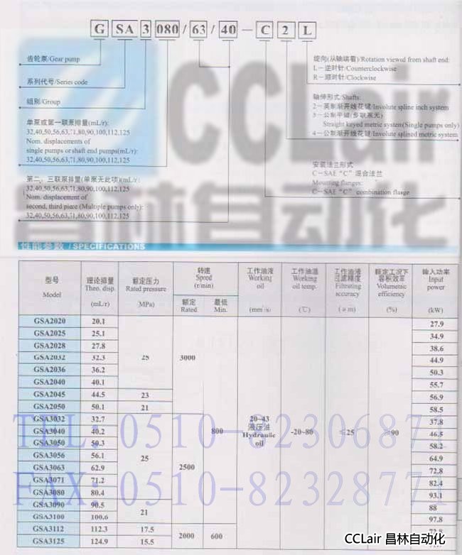 GSA3040, GSA3050, GSA3056, GSA3063, GSA3071,高壓齒輪泵