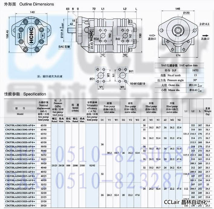 ⑦ 軸伸形式 Shaft end Φ: SAE花鍵 SAE spline