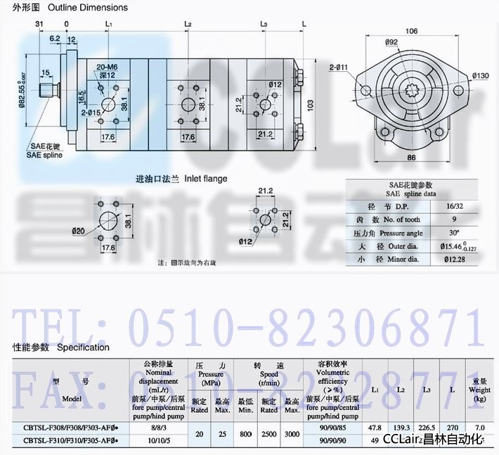 ?、?軸伸形式 Shaft end Φ: SAE花鍵 SAE spline