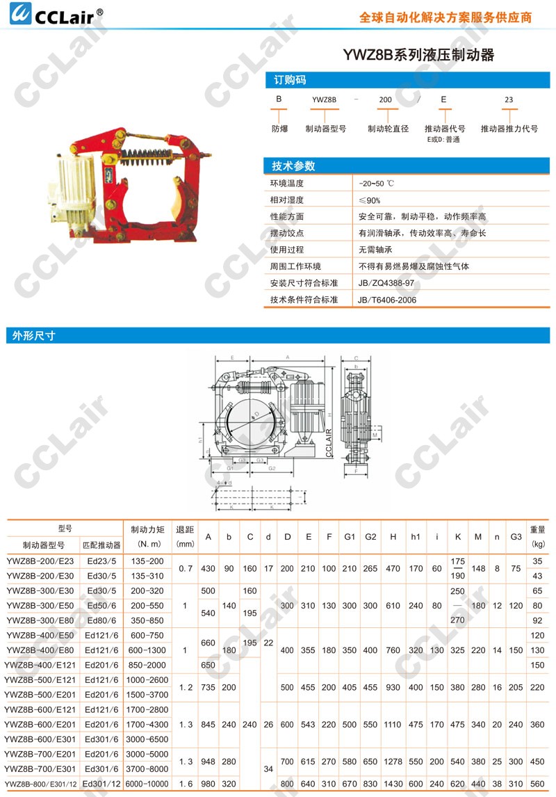 YWZ8B-200,YWZ8B-300,YWZ8B-400,YWZ8B-500,YWZ8B-600,YWZ8B-700,YWZ8B-800,BYWZ8B-800,液壓制動器