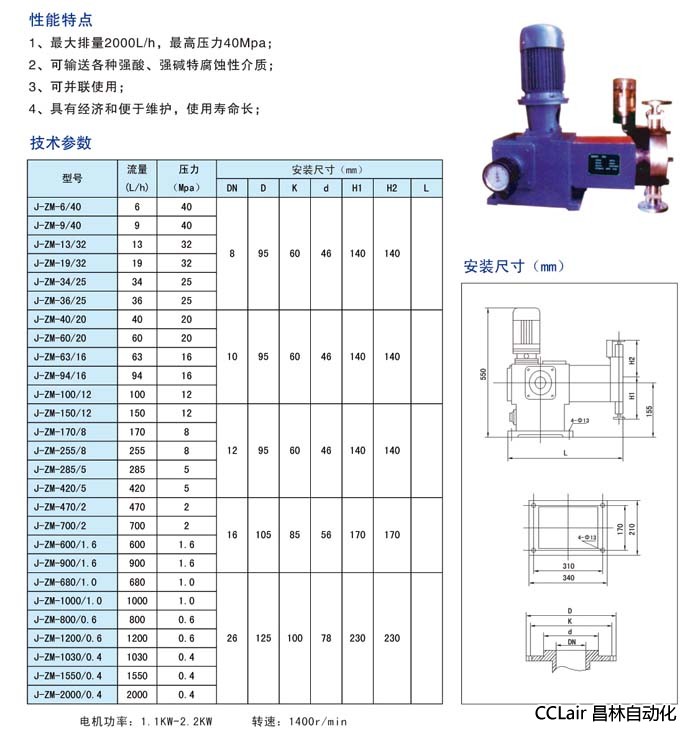 詳細(xì)信息 J-ZM-40/20,J-ZM-60/20,J-ZM-63/16,液壓隔膜計(jì)量泵