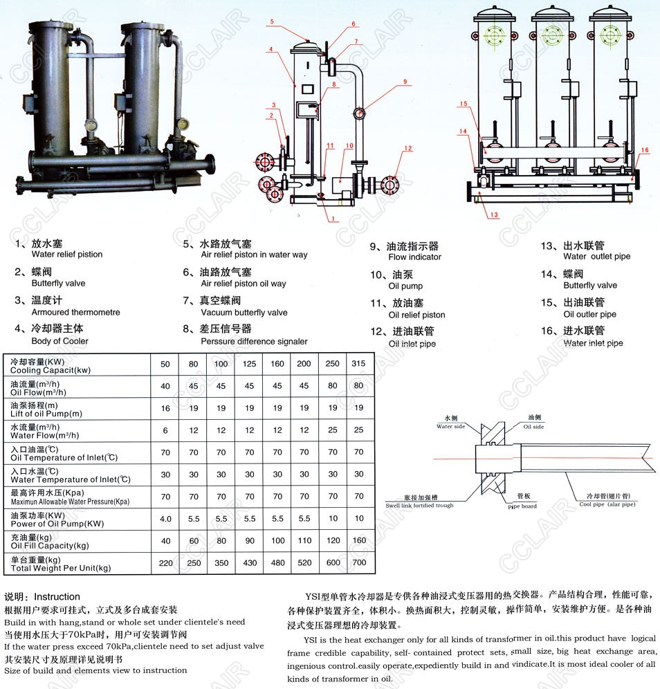 詳細信息 YSI-50,YSI-80,YSI-100,YSI-125,YSI-160,YSI-200,YSI-250,YSI-315,YSI,油水冷卻器