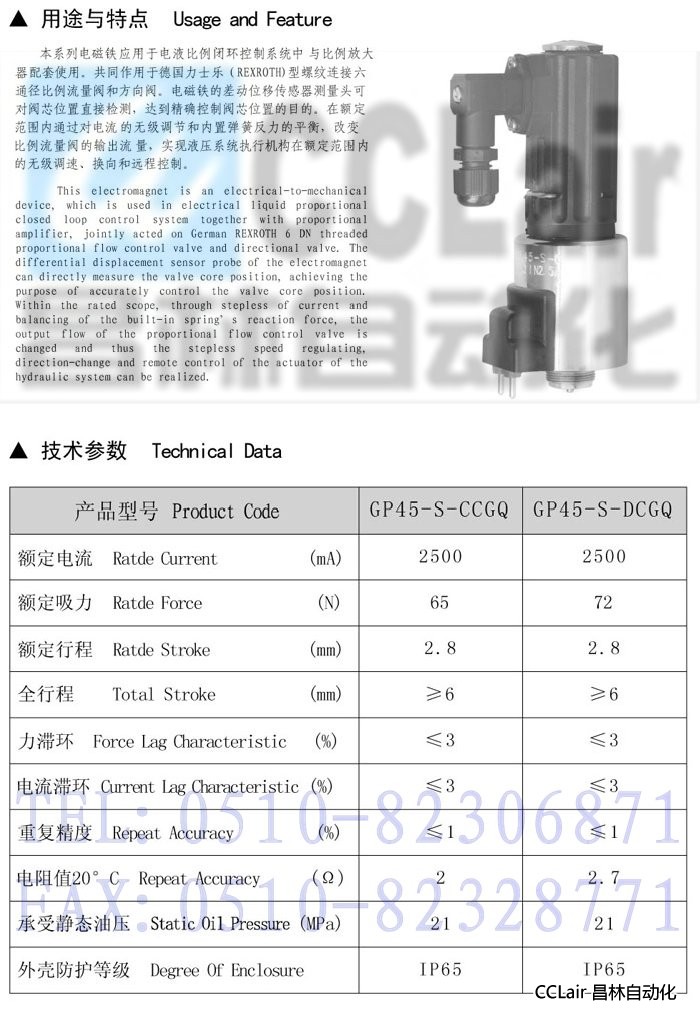 GP45-S-CCGQ,GP45-S-DCGQ,帶位移傳感器比例閥用電磁鐵