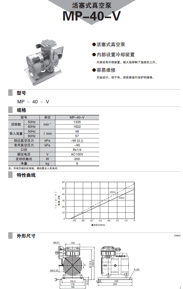 詳細(xì)信息 MP-40-V,活塞式真空泵