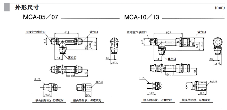 MCA-05HS,MCA-07HS,MCA-10HS,MCA-13HS,MCA-05LS,MCA-07LS,MCA-10LS,真空發(fā)生器