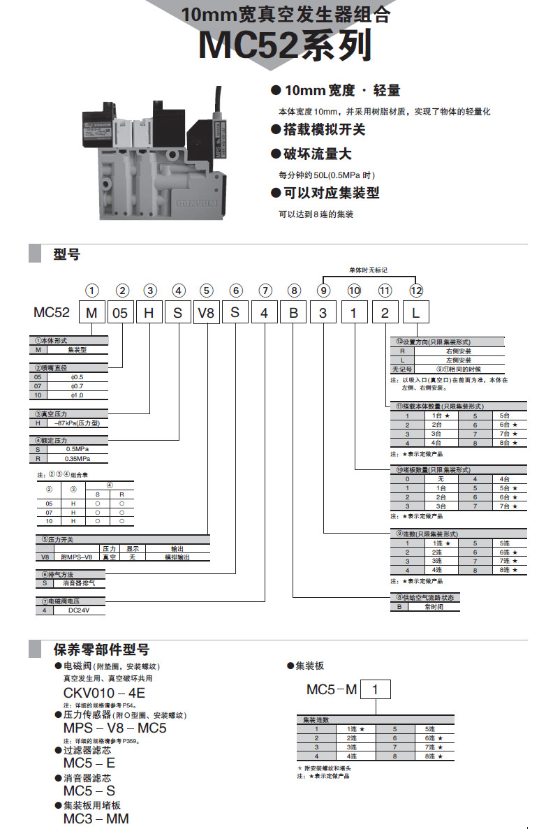 MC52-M-05-H-S-V8-S-4,MC52-M-07-H-S-V8-S-4,MC52-M-10-H-S-V8-S-4,真空發(fā)生器組合
