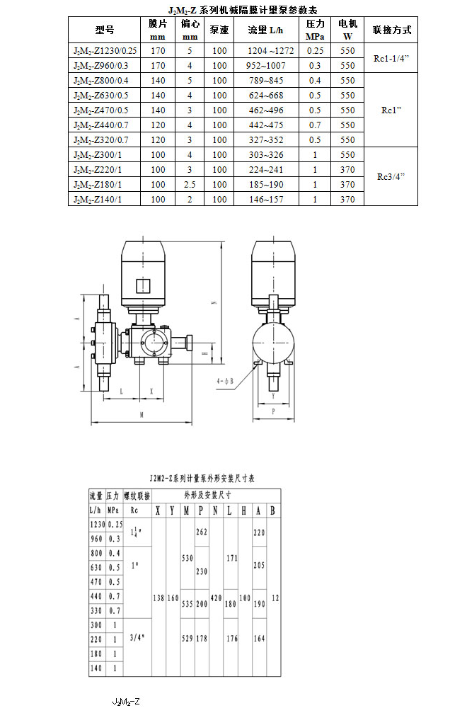 J2M2-Z1230/0.25,J2M2-Z960/0.3,J2M2-Z800/0.4,J2M2-Z630/0.5,J2M2-Z型機(jī)械隔膜式計(jì)量泵