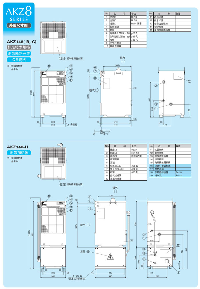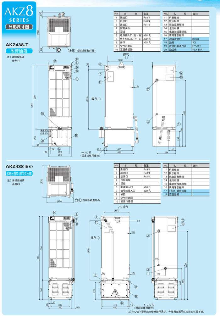 詳細(xì)信息 AKZ148,AKZ328,AKZ438,AKZ148-B,AKZ328-B,AKZ438-B,AKZ148-C,DAIKIN變頻油冷卻機(jī)
